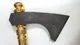 Корпус топора выполнен из дамасской стали, известной своей прочностью и исключительной красотой. Острое лезвие, надежно удерживаемое в рукояти, гарантирует безупречную функциональность. Рукоять изготовлена из благородного дерева, подчеркнута элементом декора из латуни, покрытой позолотой, и украшена натуральными гранатами, что придает изделию неповторимый вид.